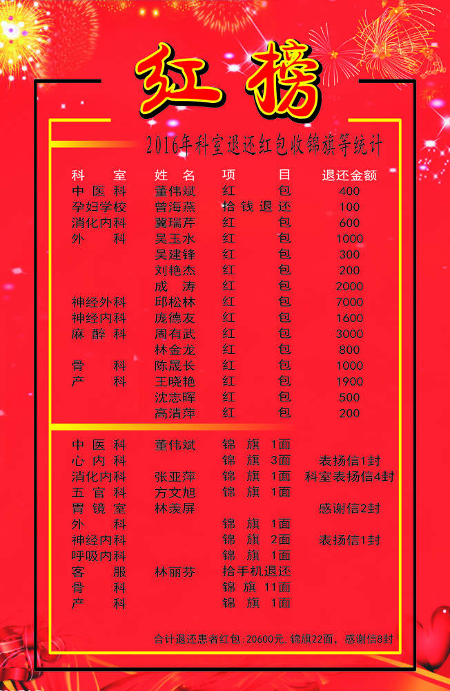 自開(kāi)業(yè)以來(lái),隨著(zhù)盛興醫院各項工作不斷得到社會(huì )和患者的認同,病人收治數量持續增加,醫務(wù)人員越來(lái)越受到患者及其家屬的認同。一些患者以種種原因為由,向各科室醫務(wù)人員贈送紅包,答謝他們的勞動(dòng)。